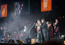 La apertura estuvo a cargo del grupo cuartetero La Monada, acompañado de bailarinas y sorpresas en la puesta.