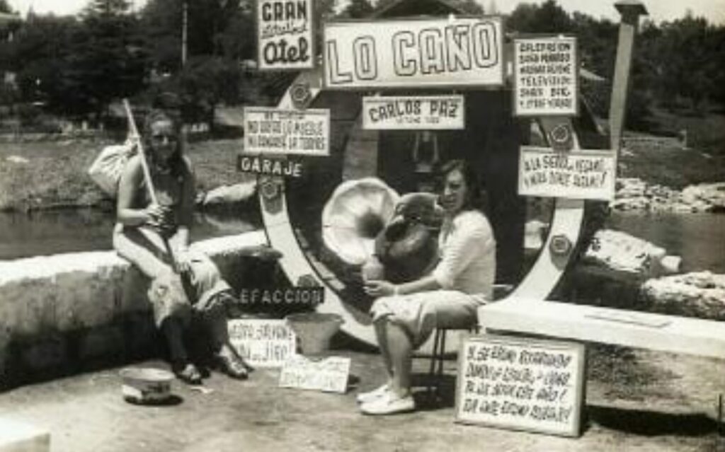 En la década del 60/70 los fotógrafos ambulantes no ahorraban ingenio para captar la atención de turistas y locales. En este caso Foto Res de Ramón Skolkaz instalaba su estudio de exteriores en la cabecera oeste del puente viejo, hoy Puente Carena.
