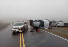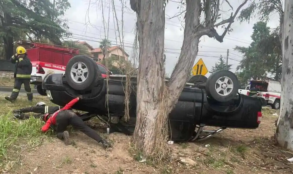 De acuerdo con la información policial, el conductor, un hombre de 64 años, manifestó haber perdido el control de la camioneta Chevrolet S10 en la que circulaba junto a su esposa, de 56 años, lo que provocó que el vehículo quedara volcado con las cuatro ruedas hacia arriba.