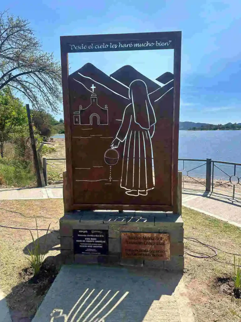 Durante la ceremonia se emplazó un memorial con profundo simbolismo, que representa a la Madre Tránsito contemplando la antigua capilla donde fue bautizada, cuyas ruinas descansan bajo las aguas del lago San Roque.